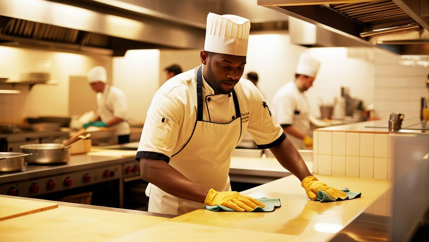 - Keep kitchen surfaces, floors, and walls clean to ensure a hygienic workspace.