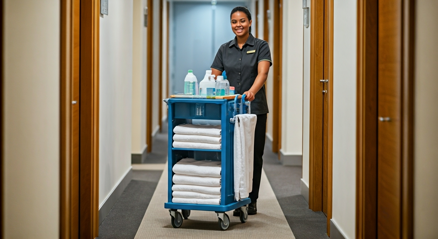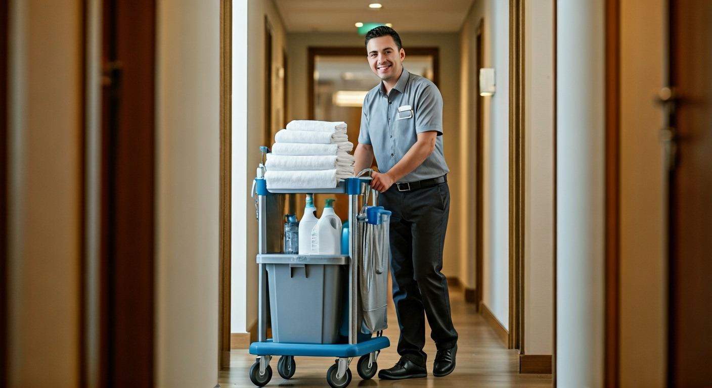 A: Room Attendants maintain guest rooms and public areas to our high standards. Duties include making beds, cleaning bathrooms, vacuuming, dusting, restocking amenities, and ensuring rooms meet quality standards before guest check-in.